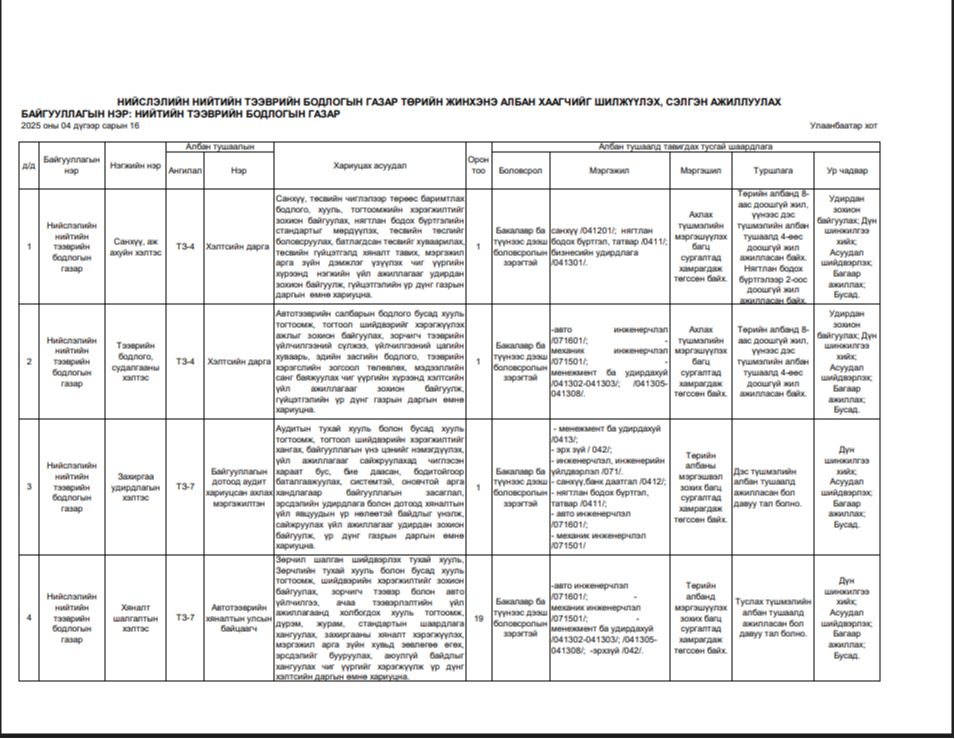 НИЙСЛЭЛИЙН НИЙТИЙН ТЭЭВРИЙН БОДЛОГЫН ГАЗАР