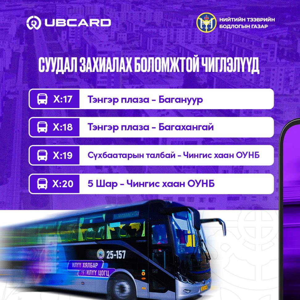 Багануур, Багахангай, Чингис хаан ОУНБ руу явж байгаа 45 хүний суудалтай автобуснууд суудлаа урьдчилж захиалдаг шинэ системийг нэвтрүүлсэн. Гадаадаас Улаанбаатар хот руу, Багануураас Улаанбаатар хот руу, хотоос тийшээ зорчих гэж байгаа иргэн бол заавал очоод төлбөрөө хийх биш урьдчилаад аппликейшнаар ороод 45 хүний суудалтай автобусны хаана нь суувал ая тухтай байх суудлаа захиалж, төлбөр тооцооны хэрэгсэл нэвтрүүлсэн нь иргэдийн талархлыг хүлээж байгаа.