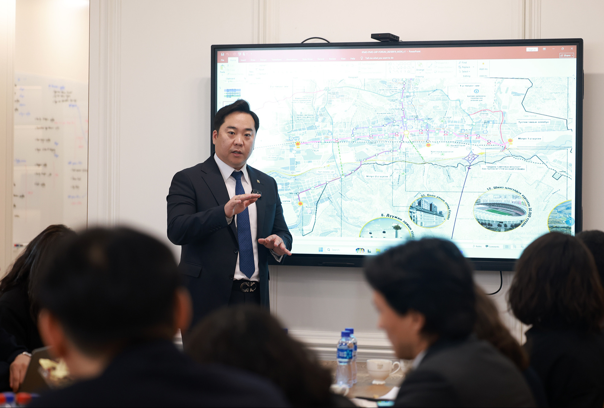Хурлын эхэнд Солонгосын Зам Тээврийн Судалгааны Хүрээлэнгийн төлөөлөл доктор Хун-ки Ли “Технологид суурилан Улаанбаатар хотын замын хөдөлгөөний түгжрэлийг бууруулах төсөл”-ийн тухай танилцуулав. 2025 оны 5 дугаар сараас эхлэн 2 жилийн хугацаанд хэрэгжиж буй уг төсөл Улаанбаатар хотын 2040 он хүртэлх хөгжлийн төлөвлөгөөтэй уялдсан түгжрэлийг бууруулах хамгийн оновчтой шийдлүүдийг боловсруулах, үйл ажиллагааны төлөвлөгөө боловсруулахаар зорьж байгаа аж. Миний зүгээс энэхүү төслийн үйл ажиллагаандаа Түгжрэлийг бууруулах ажлын хэсгийн хүрээнд хийгдэж буй судалгаа, төлөвлөлт, оновчтой шийдлүүдийг тусгахыг хүслээ.