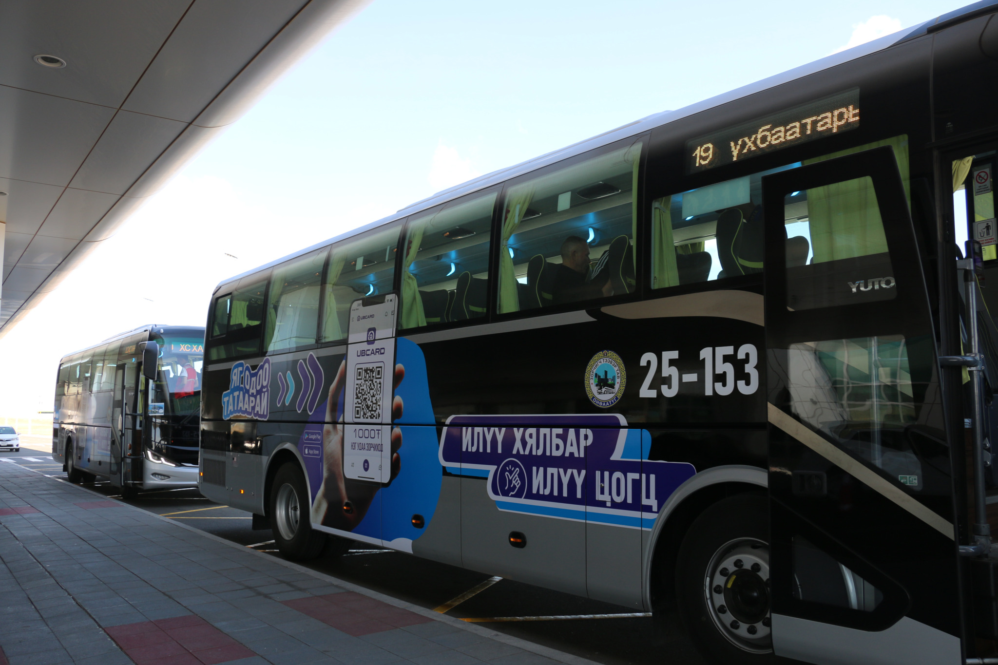 “Чингис хаан” олон улсын нисэх буудал /ОУНБ/ руу олон улсын стандарт хангасан нийтийн тээврийн автобус 24 цагаар үйлчилж байгаа.