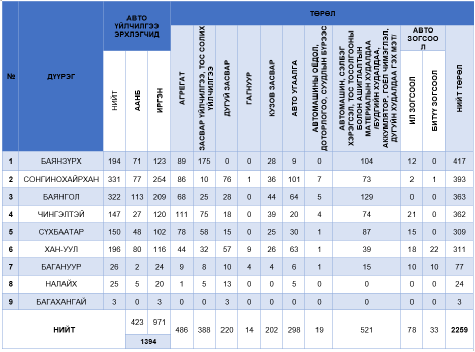 НИЙСЛЭЛИЙН НУТАГ ДЭВСГЭРТ АВТО ҮЙЛЧИЛГЭЭ ЭРХЛЭГЧ АЖ АХУЙН НЭГЖ